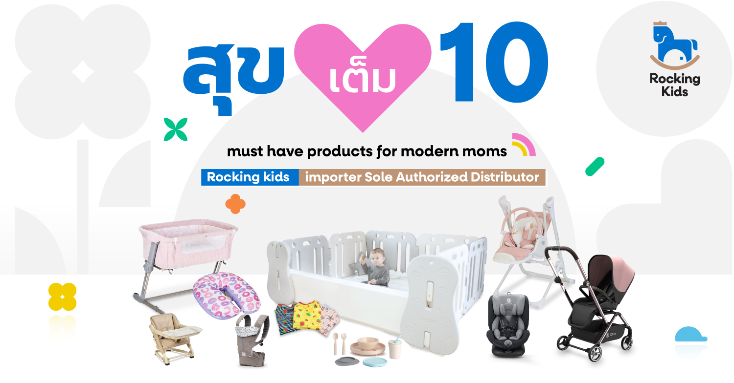 หากทำหมดทุกอย่างแล้วแต่ถ้าคุณยัง ไม่หายเหนื่อย อย่าลืมว่า ร็อคกิ้งคิดส์ มีไอเทมเด็ดๆ ที่ช่วยให้คุณแม่เลี้ยงลูกได้ง่ายขึ้นเยอะ สินค้าแม่และเด็กตัวช่วยสำคัญประกอบไปด้วย 4 หมวดหมู่หลัก ๆ อันได้แก่ กิน นั่ง นอน เที่ยว จะเข้ามาช่วยเติมสุขให้เต็ม10 ให้กับคุณแม่ได้