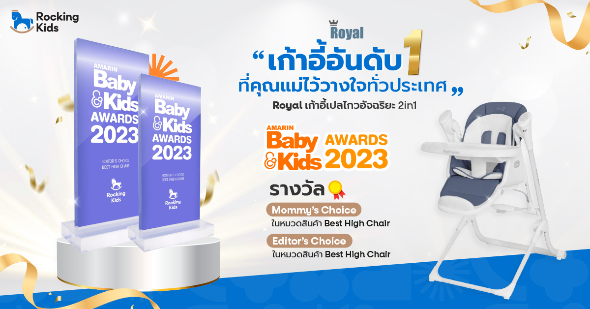 กรุงเทพฯ, - บริษัท ร็อคกิงคิดส์ อินเตอร์เนชั่นแนล จำกัด ผู้ผลิตและจัดจำหน่าย “Royal Smart Swing High Chair – เก้าอี้เปลไกวอัจฉริยะ 2in1 โดย คุณปริญญ์ เสริมพงศ์ (ประธานเจ้าหน้าที่บริหาร CEO) พร้อมด้วย คุณปีใหม่ เสริมพงศ์ (รองประธานบริหาร CFO) เข้ารับรางวัล จากเวที Amarin Baby&Kids Awards 2023 ได้แก่ Mommy’s Choice สุดยอดแบรนด์สินค้าในดวงใจที่มาจากเสียงโหวตของคุณแม่ผู้ใช้จริงทั่วประเทศ และ รางวัล Editor’s Choice Awards สุดยอดแบรนด์สินค้าใช้ดี และมีประโยชน์จริง ได้รับการคัดเลือกจากทีมบรรณาธิการ Amarin Baby & Kids ในหมวดอุปกรณ์ดูแลเด็ก ทั้ง 2 รางวัล ถือเป็นรางวัล การันตีถึงคุณภาพและความน่าเชื่อถือของผลิตภัณฑ์ พร้อมตอกย้ำความเป็นผู้นำในวงการสินค้าแม่และเด็ก ณ อาคารเพกาซัส ทรู ดิจิทัล พาร์ค เมื่อวันที่ 26 ตุลาคม 2566 ที่ผ่านมา