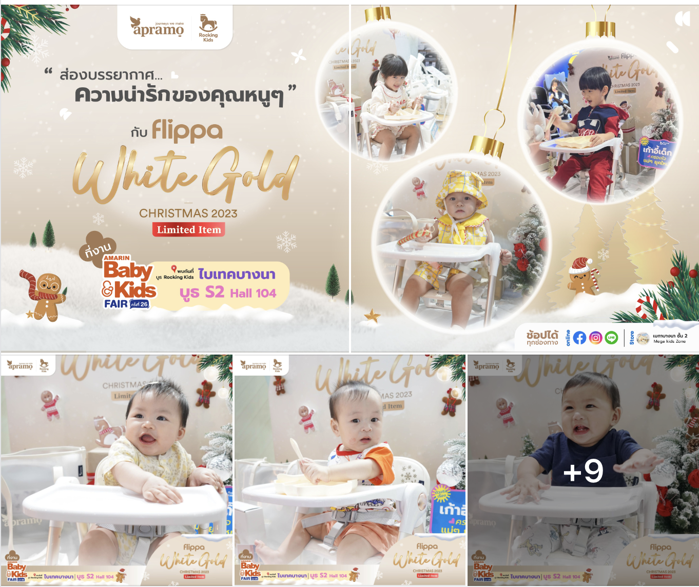 และกิจกรรมเปิดตัวอย่างยิ่งใหญ่กับการกลับมาอีกครั้งของเก้าอี้ยอดฮิตจาก Apramo Flippa รุ่น White gold ที่แม่ ๆ ทั่วประเทศตามหา โดยทีมงานคุณภาพจาก Rocking kids รอบนี้เล่นใหญ่จัดเต็ม เช่าสตูดิโอ ถ่ายกันแบบยิ่งใหญ่เพื่อตั้งใจมอบประสบการณ์การช็อปที่ดีที่สุดให้กับแม่ ๆ