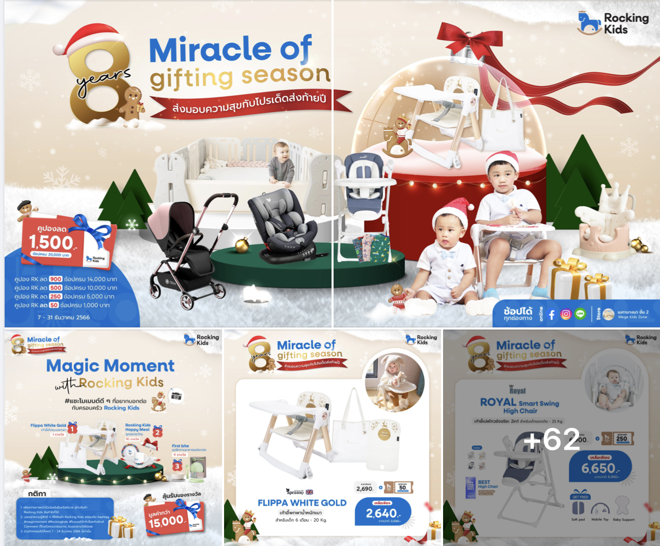 บริษัทร็อคกิงคิดส์อินเตอร์แนชั่นแนล จำกัด ผู้นำเข้าและจัดจำหน่ายสินค้าแม่และเด็กแบรนด์ชั้นนำของประเทศ จัดกิจกรรม "8 Year Miracle of Gifting Season" ขึ้น เพื่อเฉลิมฉลองถึงความสำเร็จที่ผ่านมาและเตรียมพร้อมมุ่งหน้าสู่ปีที่ดีกว่าในปี 2024 อย่างภาคภูมิใจ พร้อมปณิธานที่จะก้าวขึ้นสู่ 1 ใน 5 แบรนด์แม่และเด็กชั้นนำระดับประเทศ