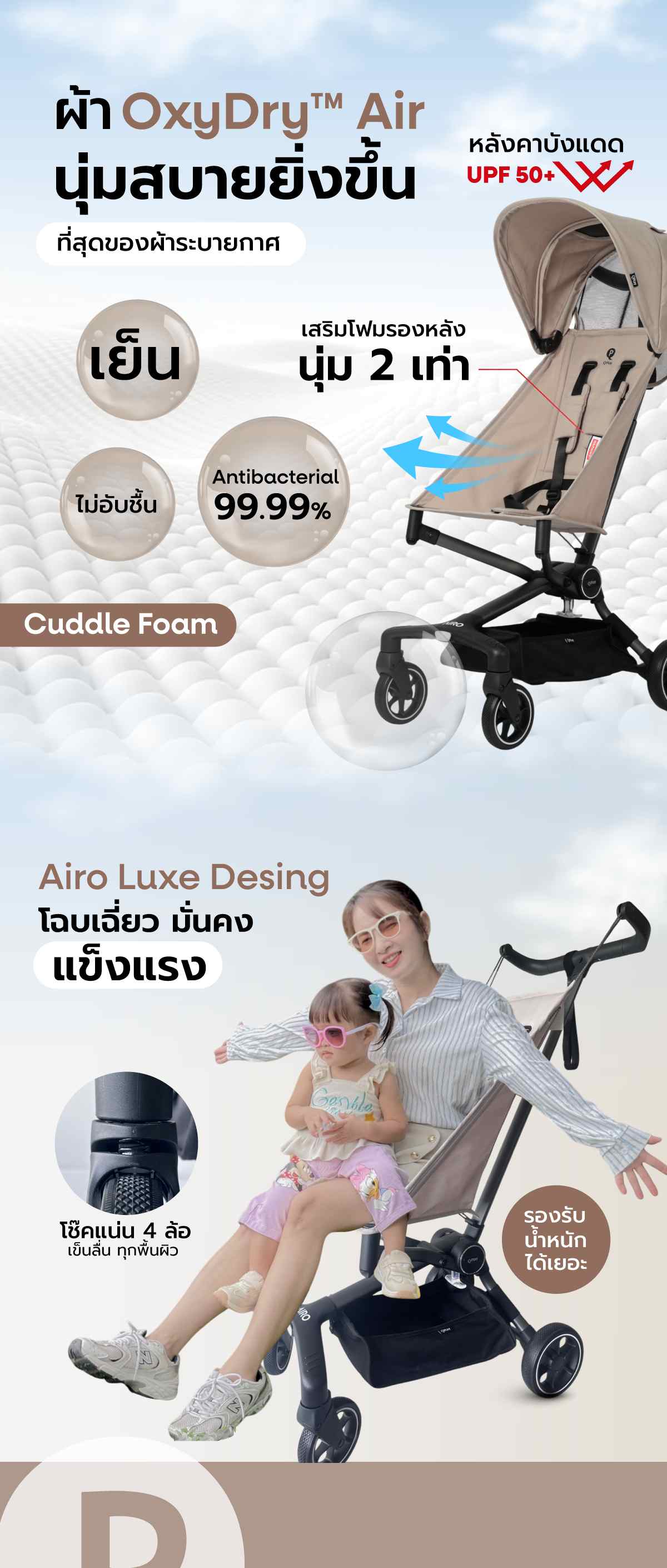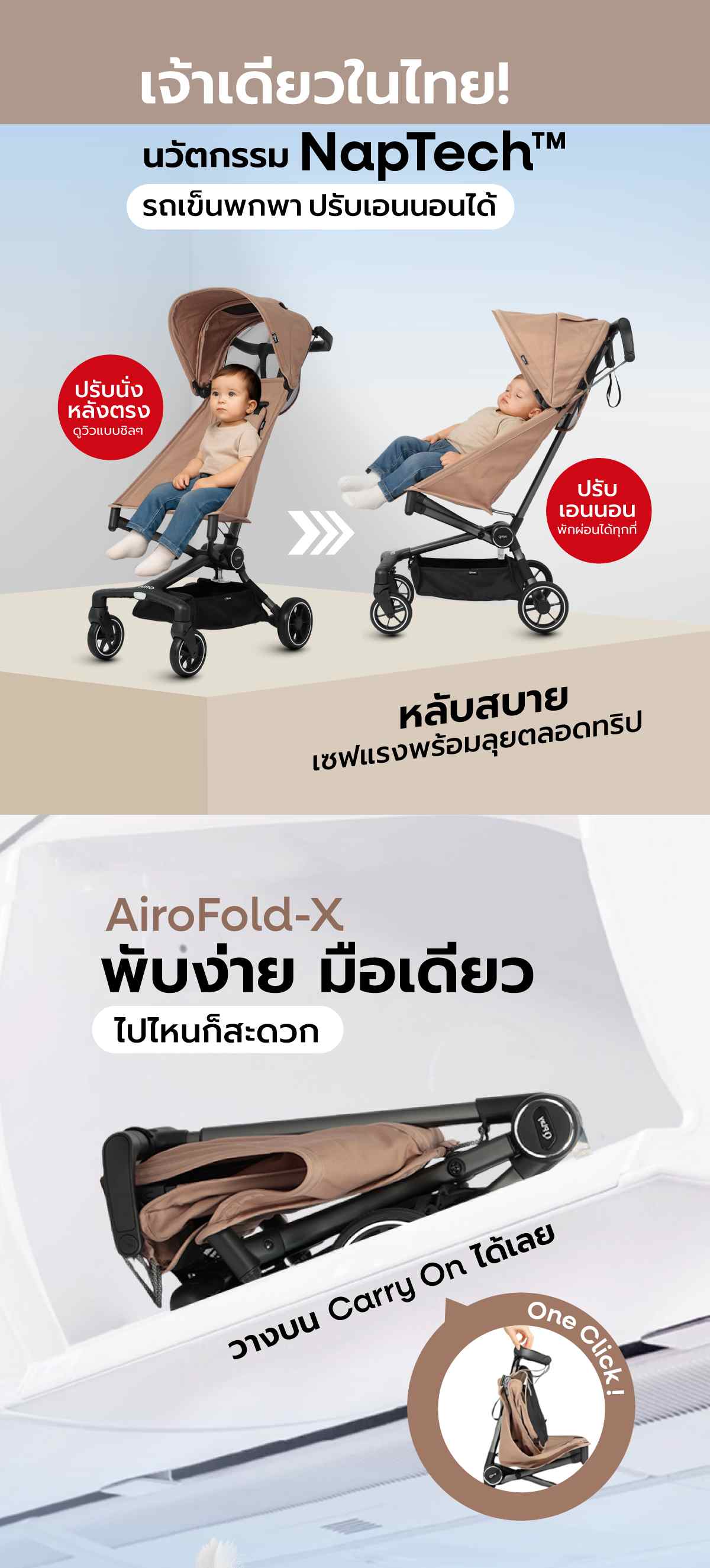 รถเข็นเด็กพกพา Qplay Airo น้ำหนักเบา 4.3 กก. พับเล็กขึ้นเครื่องบินได้ ปรับเอนได้ 135 องศา รองรับเด็กโตถึง 50 กก. มาตรฐานยุโรป EN1888